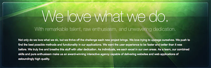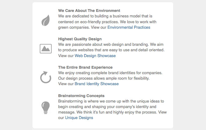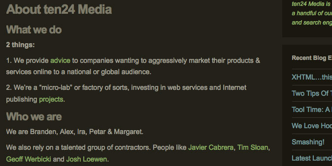 將您的“關(guān)于頁面”分為幾部分,例如我們的工作,我們是誰,我們與誰合作等等。