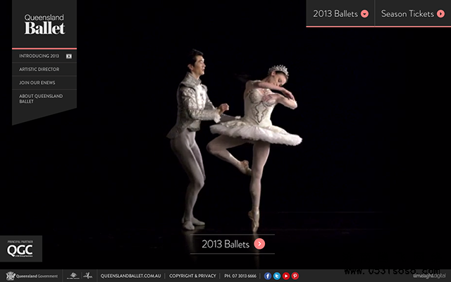 2、Ballet與普通的人物背景網頁設計不同,在人物的處理上沒有使用高清的大圖,而是故意做了充滿朦朧感的模糊處理,搭配經典的黑色,讓網頁多了一層神秘感。為了掩蓋大量的留白可能會帶來的單調,設計師用人物的大幅度動作讓頁面看起來更充實。