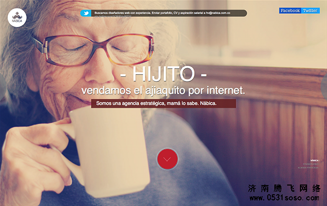 5、使用高清大圖作為背景是2014年的網頁設計趨勢之一,在這個案例中也有一定的體現,而使用高清圖片的特點就是讓畫面的真實感更強,但同時也許會流失一些美感。如下案例所示,老奶奶布滿皺紋的臉的確讓網頁更多了一些生活感和親切感,但如果不加以修飾就就會顯得有些許蒼白單調,因此設計師巧妙的加以紋理背景,讓畫面看起來既不失真又美觀。